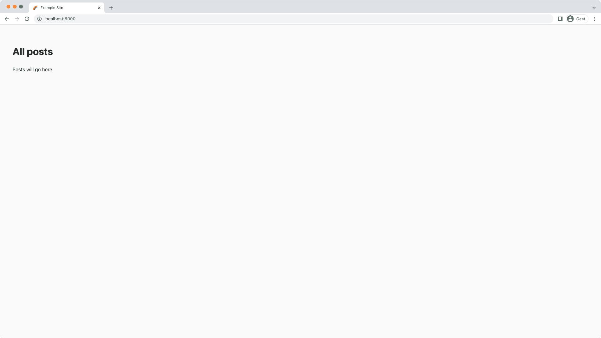 Once the development server is ready, go to http://localhost:8000, and be greeted by a minimalistic index page.